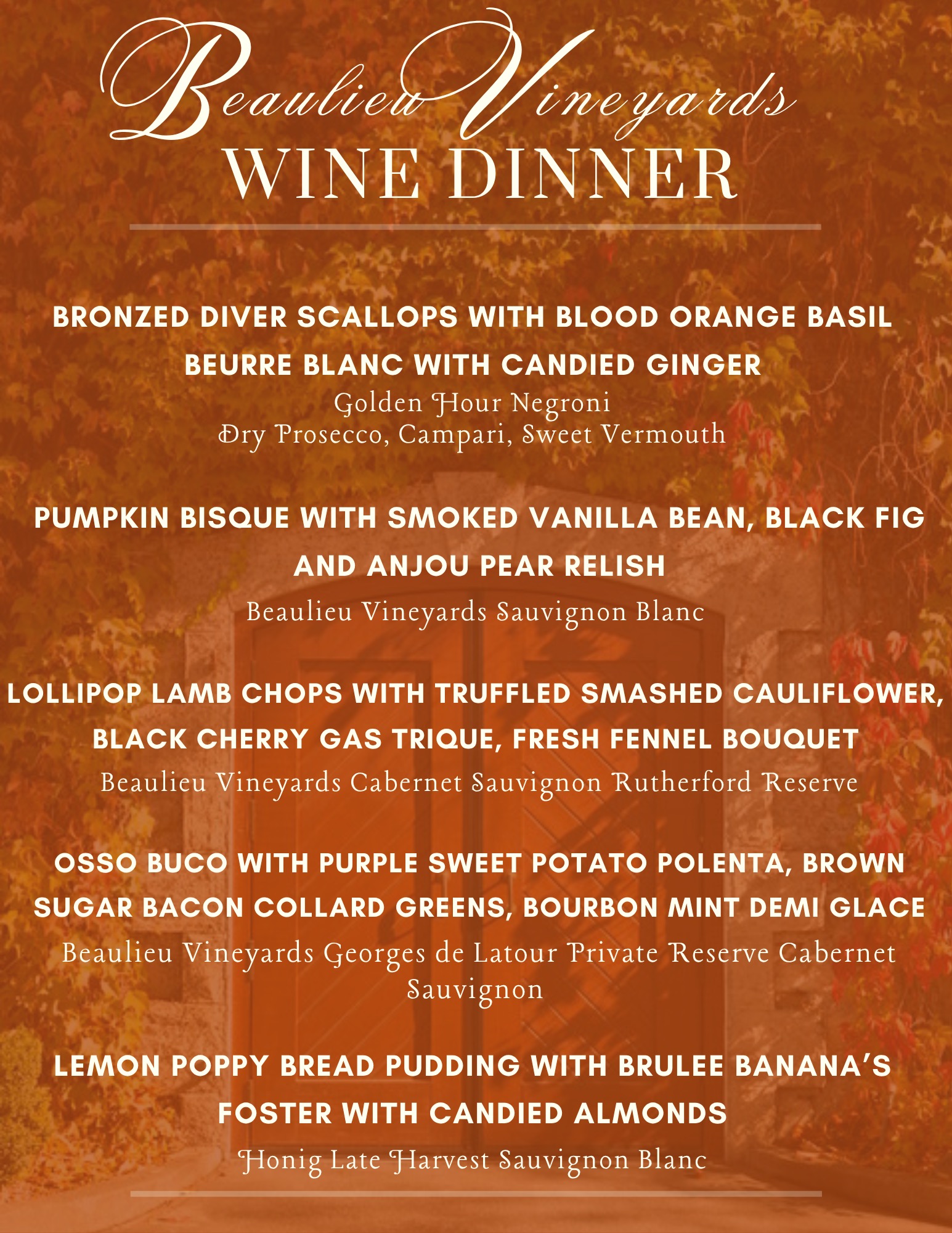Join us for an unforgettable evening featuring a Beaulieu Vineyards–inspired menu, delicious pairings, and great company. November 20th! Don’t miss out on the fun & reserve your spot today! 🍇✨ […]